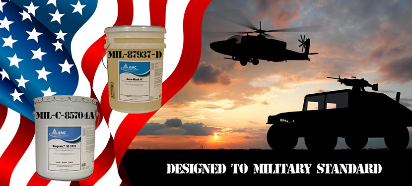 The United States Military relies on Rochester Midland Corporation’s Biogenic SE 377C (MIL-C-85704A) & Aero-Wash IV (MIL-87937-D) to safely and efficiently clean their equipment, vehicles/planes and machinery. Having these Military Specified Products is a top class nod, as it is a reflection of our products that are trusted at the highest level and meet the military’s complex standards.