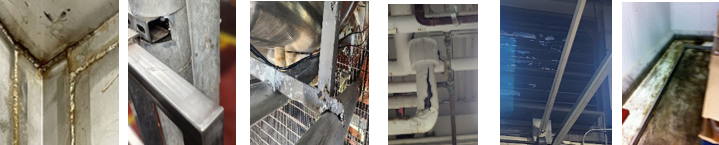 - Equipment structures including hollow, unsealed, and corroded framing and welds