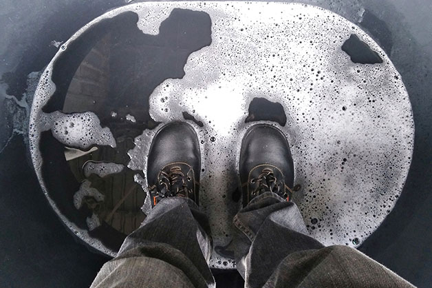 For facilities that rely solely on dry sanitation, and where minimizing water activity is crucial, Devere Security Floor Treatment is an excellent option. This alkali-peroxide powder does not require water to activate and can be added to a boot scrubber mat that is staged in front of main doors, or lightly broadcast in front of roll-up and sliding doors.