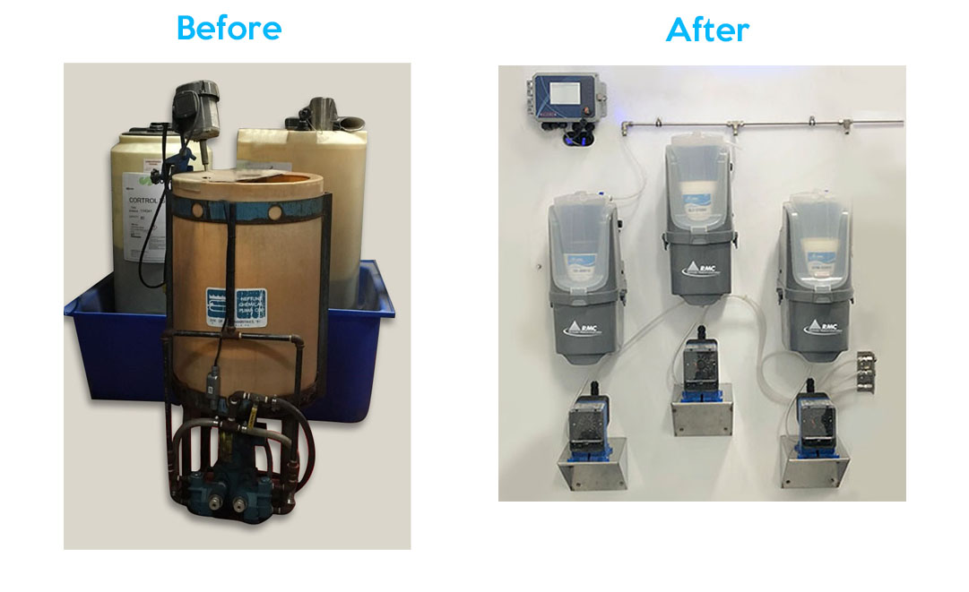 Splashing and spilling of highly acidic or alkaline chemicals can increase the risk of chemical exposure and inhalation incidents. It also creates hazardous areas and hazardous waste when liquid chemicals accumulate and dry inside containment basins. The use of solid product chemistry eliminates the potential for chemical spills and risks during shipping, application, and storage.